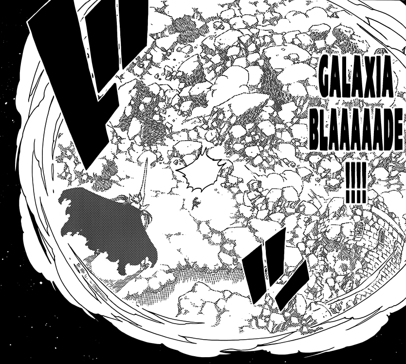Épée Galactique (?) Terme issu de la traduction officielle de l'éditeur ou de la VF de l'animé, il ne faut pas le modifier ! (ギャラクシア ブレイド, Gyarakushia Bureido) est un sort d'Épées Magiques du Roi des Esprits.