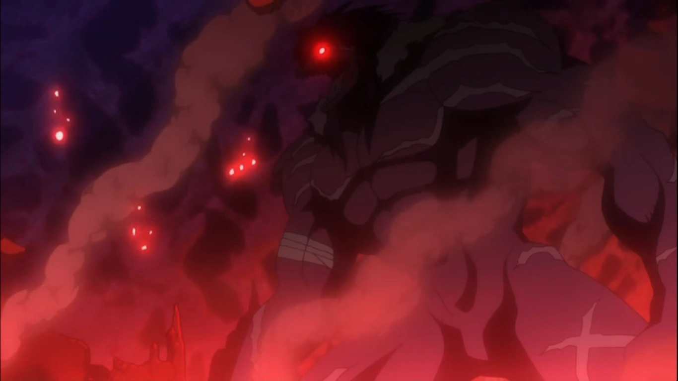 | Dans le manga, Midnight dans sa forme de monstre dans son illusion envoie des tentacules sur Erza et Gerald puis les transperce au niveau du Torse. | Dans l'anime, Midnight dans sa forme de monstre dans son illusion dévore Gerald. |