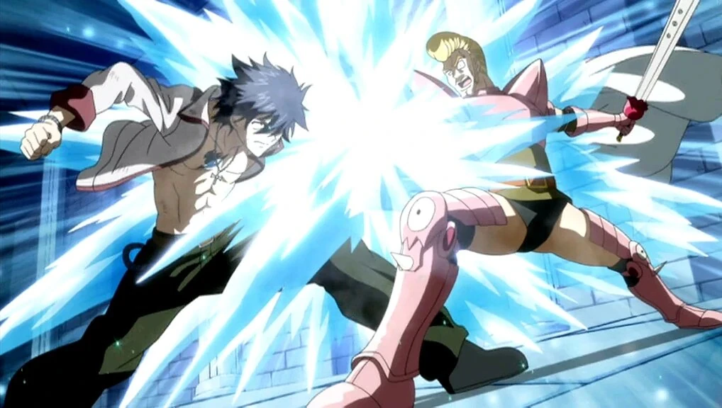 Grey est alors hésitant mais il ne lâche pas la clé, et celle-ci finit par se briser en mille morceaux. Il lui dit alors qu'il n'a pas besoin de cette clé, puisqu'il est un mage de glace constructeur et qu'il est capable de se créer la clé lui même.