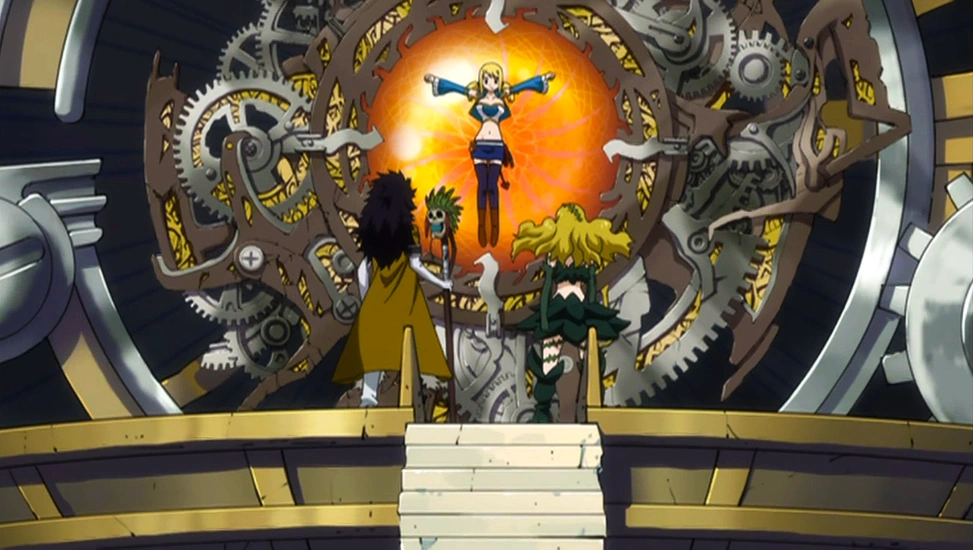 Les archéologues rencontrés précédemment se rendent à Fairy Tail et explique tout à propos de l'horloge de l'infinité. En effet, les nouveaux Oracion Seis ont capturé Lucy afin de la sacrifier pour bénéficier du contrôle de l'horloge. Le Conseil Magique découvre que le Cardinal Lapointe est de mèche avec l'ennemi. Blue Pegasus conduit la guilde vers Zentopia.