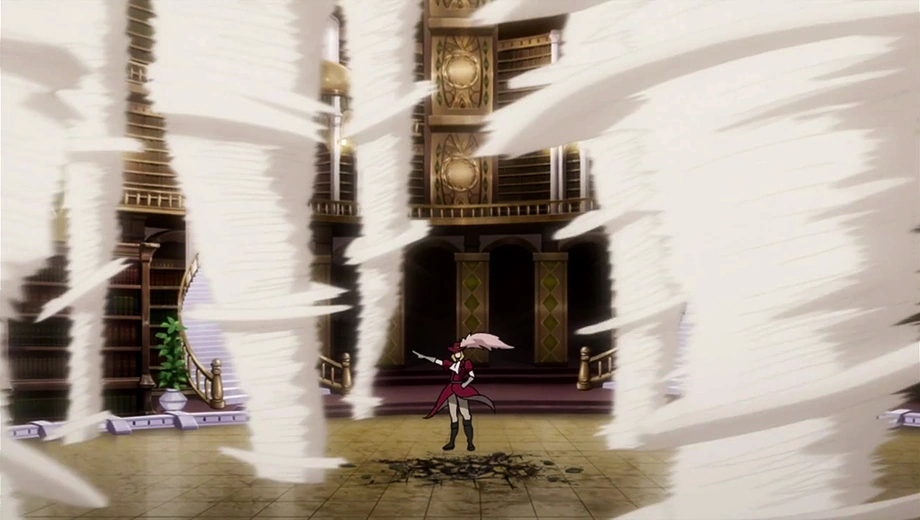 Retour à la bibliothèque de Crocus, Grey commence son attaque avec son Lancier de Glace. Mais Rufus évite son attaque et commence à mémoriser tous ses sorts . Celui-ci est toujours sur l'offensive et tente d'attaquer Rufus à nouveau en vain, mais Rufus ne fait qu'esquiver à chaque fois. Grey lui demande ce qu'il murmure depuis tout à l'heure à travers leur combat et Rufus lui explique que ses souvenirs peuvent être utilisés comme une arme et que grâce à ses souvenirs, il peut fusionner deux types de magie en même temps.. Il commence donc par fusionner la Magie de Glace Constructive de Grey avec la foudre d'Orga et passe à l'attaque.
