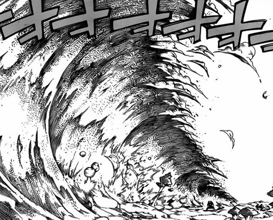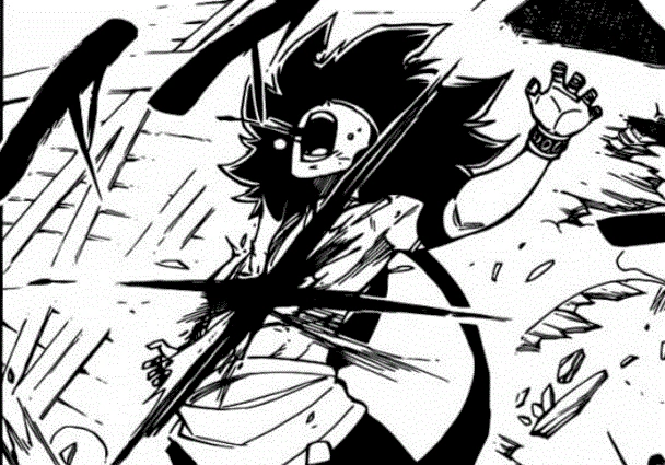 Ils sont à différents niveaux, dit-il avant de les insulter de petits vers. Il continue en disant qu'Ishgar est une terre abandonnée par les dieux, et qu'il n'est qu'une question de temps avant qu'Arbaless en prenne le contrôle. Alors que les mages s'enfoncent toujours, il continue en les narguant, leur annonçant qu'ils sont frustrés et qu'il adore les têtes qu'ils font en ce moment même. Une immense gerbe de flammes s'élève dans le ciel et dissipe le sable. Natsu, car c'est lui qui a produit ce feu, annonce que même si les Dieux ont abandonné Ishgar, il leur reste au moins les fées. Ajil constate que le sable s'est évaporé, et Natsu fonce sur lui, le frappant d'un coup de poing chargé de flammes ![4]