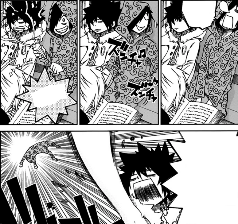 Le chapitre s'ouvre sur une scène qui se déroule dans le train où Grey, Pauze ainsi que le voleur rencontré dans les précédents chapitres y sont. Doronbo, ayant dit au jeune Mage de Glace qu'il le suivrait jusqu'où il ira, le regarde de près, assis à côté de lui dans le train. Énervé qu'il se retrouve dans sa bulle, Grey lui demande sans gêne de prendre de la distance avec lui, mais le garçon à l'accoutrement une pièce refuse - par vengeance. Pauze, demande aux garçons de se calmer et au lieu de se chamailler, tenter de devenir compagnons. Il rajoute qu'il passe un bon moment et qu'il a la chance de voyager à leurs côtés.