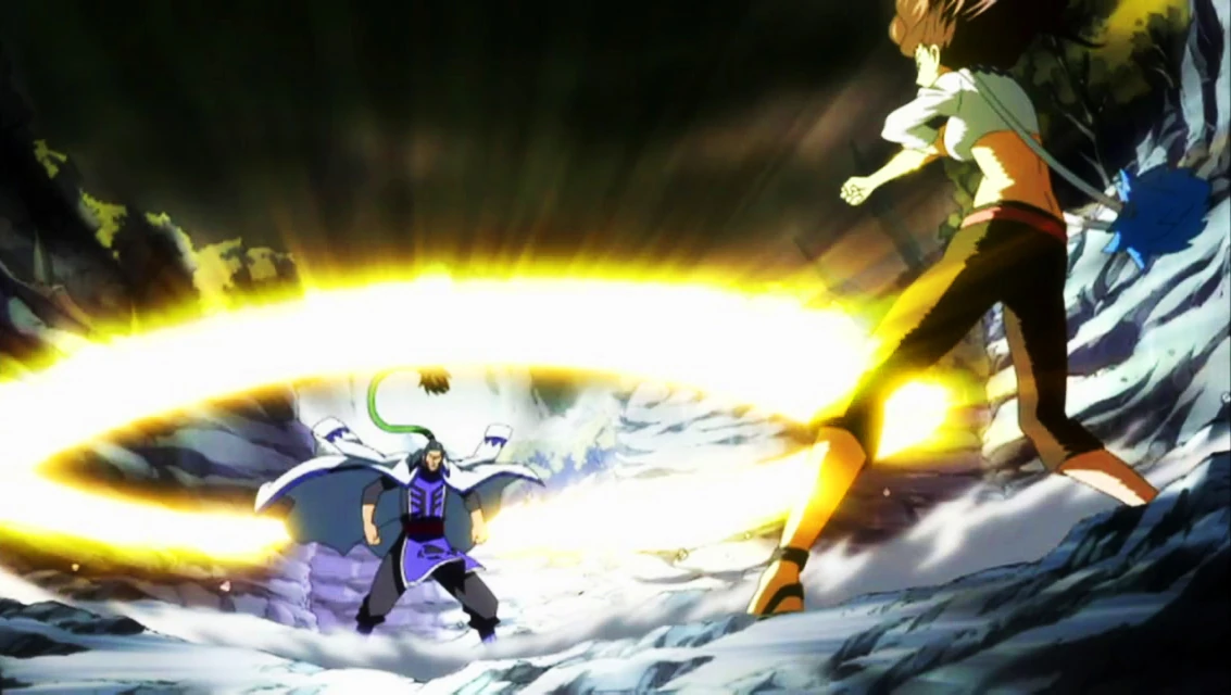 Bluenote attaque Natsu à l'aide de sa Magie de Gravité