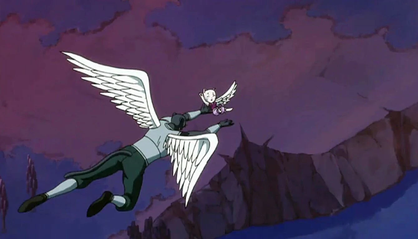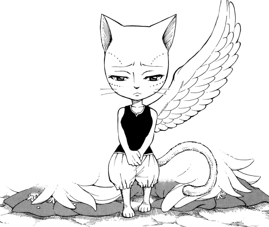 - "Chez un Exceed, les ailes grandissent et rétrécissent grâce à la puissance magique qui lui est propre. Avec vos deux ailes, vous pouvez déployez une véritable puissance magique. en avouant la vérité au peuple d'Extalia