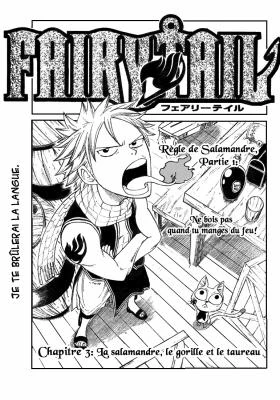 Terme issu de la traduction officielle de l'éditeur ou de la VF de l'animé, il ne faut pas le modifier ! (火竜と猿と牛, Karyu to saru to ushi) est le 3ème chapitre de Fairy Tail.