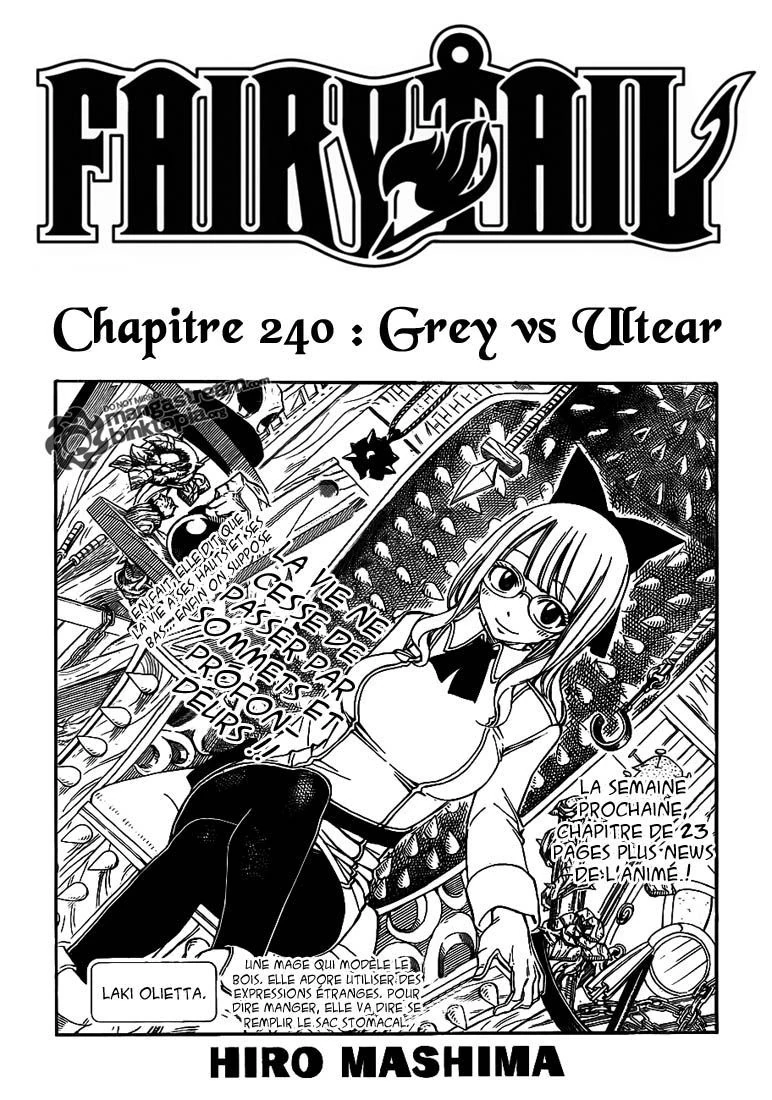 Grey vs Ultia (グレイvs.ウルティア, Gurei vs. Urutia) est le 240ème chapitre de Fairy Tail.