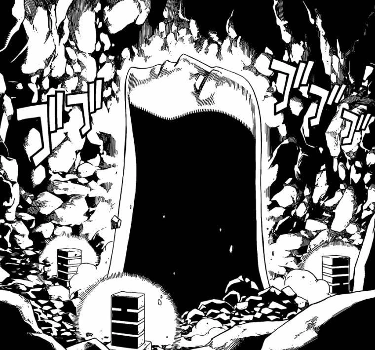Quelque part, dans une cavité en sous-sol, des dispositifs magiques se mettent en marche et la tête de Face sort petit à petit du sol jusqu'à remplir complètement la pièce. Le quartier général de Tartaros tremble et les secousses se ressentent sur toute l'île volante abritant le bâtiment, notamment dans la prison où Lisana et Natsu sont chahutés. Lisana voit quelque chose et interpelle Natsu qui tourne la tête vers elle. Ce n'est pas dans sa direction qu'il faut regarder mais bien dans celle de la porte de la cellule où une épée se balade, c'est certainement l'occasion presque inespérée pour eux de se débarrasser des chaînes qui retiennent leurs mains et les empêchent d'utiliser leur magie. Les secousses se font également ressentir là où se trouvent Kyôka et Franmars, elle a des difficultés à garder son équilibre alors qu'il doit se retenir à une colonne pour ne pas tomber. Pour elle, c'est bien la réaction attendue. Il n'y a pas d'erreur possible pour Franmars, cela signifie que le sceau de Face a bien été brisé bien que l'apparition de Face se soit visiblement faite à un point d'émergence assez éloigné de celui qui était attendu. Pour Kyôka, peu importe en fait, Franmars doit l'activer. Toutefois, c'est visiblement impossible de le faire depuis le quartier-général de Tartaros, ils ne peuvent pas télécommander l'activation qui ne peut être effectuée que manuellement. L'ancien président aurait certainement pu le faire d'ici, il apparaît que son assassinat était peut-être un peu hâtif. Il n'y a pas d'autre solution, il faut y envoyer quelqu'un.
