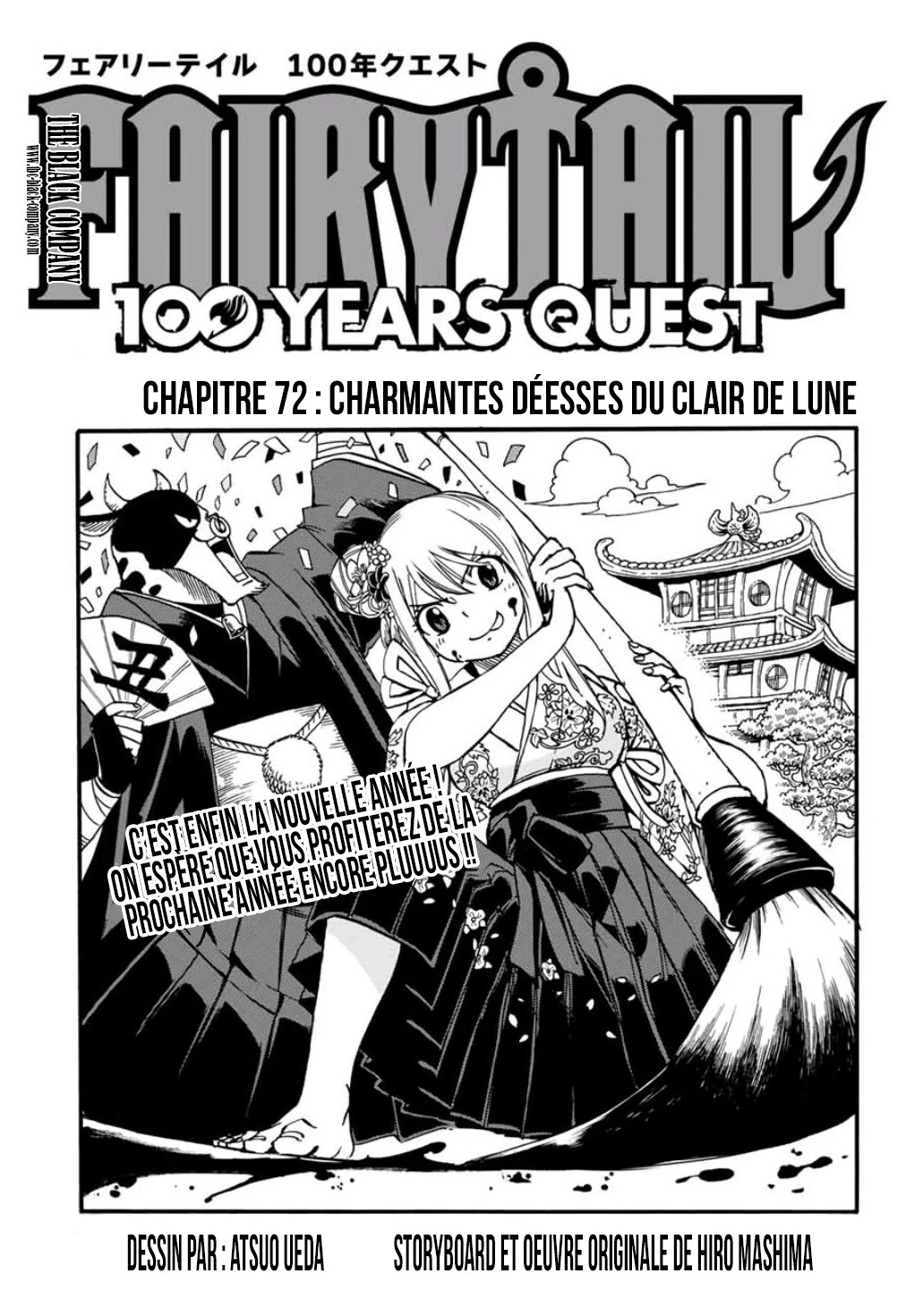La belle déesse sous la Lune (?) Terme issu de la traduction officielle de l'éditeur ou de la VF de l'animé, il ne faut pas le modifier ! (月下美神, Gekka mikami) est le 72ème chapitre du spin-off Fairy Tail 100 Years Quest.