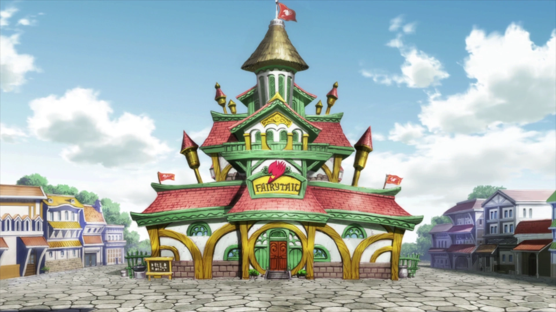 - Fairy Tail a eu 3 QG, le premier, l'original qui était une grande cantine de deux étages a été détruit par Phantom Lord. Le second est deux fois plus grand, c'est encore un bâtiment de deux étages mais avec une piscine, une terrasse et même une salle de jeux au sous-sol mais quand la guilde fit faillite, elle ne pouvait plus le garder et a emménagé dans une petite taverne sur une colline. Cependant, après la victoire de la guilde au Grand Tournoi de la Magie, elle récupère son second QG qui a été remis à neuf par le Maire de Magnoria en signe de commémoration.