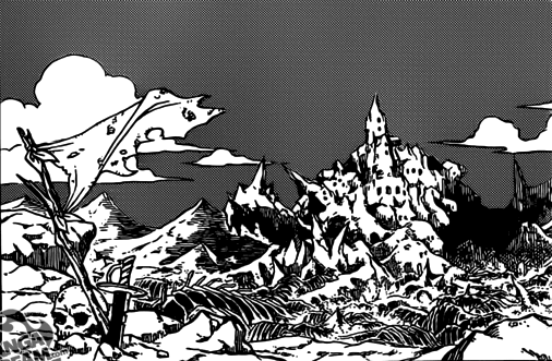 En l'an X791, les environs de la forteresse présentent un aspect légèrement différent. Certaines formations rocheuses arborent des protubérances extrêmement allongées et acérées, semblables à des stalagmites. Il est également à noter que le lieu est jonché d'ossements de grande taille, vraisemblablement d'animaux, et qu'un drapeau blanc déchiré, fixé à un bâton noueux planté dans la roche, marque l'endroit. À proximité se trouvent un petit sabre, dont la lame ébréchée est elle aussi plantée dans le sol, et un crâne humain. Autant de preuves que, même si Raven Tail est actuellement une guilde légale, il ne faut ni la sous-estimer ni la perdre de vue[6].