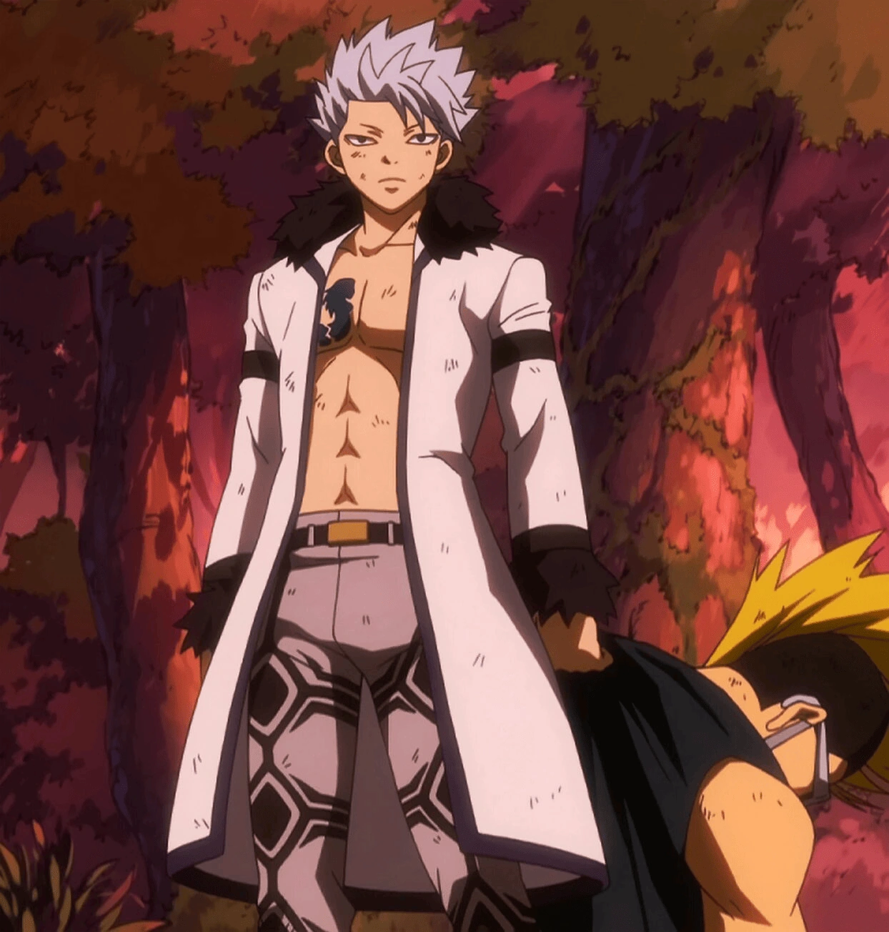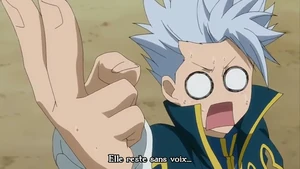 - Dans l'animé de l'arc Tartaros, il a essayé, avec ses camarades, de détruire Face.