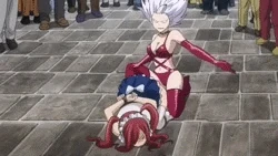 Erza demande ainsi à Natsu et à Grey ce qu'ils en pensent et elle ajoute qu'ils ne sont pas près de l'égaler, mais Lucy lui fait remarquer que le haut de son armure est déchirée. Happy lui explique ainsi qu'elle s'est coupée elle-même en utilisant son épée et Natsu et Grey la rejoignent dans son idée. Erza, furieuse leur lance les crocodiles en leur répliquant qu'on ne se moque pas des poitrines. Wendy, inquiète leur fait part qu'à ce rythme, ils ne trouveront pas la Pierre Magique avant midi. Soudain le singe leur montre la pierre magique dessinée sur leur carte et il leur fait comprendre qu'elle est en sa possession. Il embrasse alors Grey choqué sur la bouche et lui crache la pierre dans la sienne. Tout le monde se réjouit d'avoir trouvé la pierre et Natsu avoue finalement que c'est Grey qui a réussi puisqu'il a trouvé la pierre et toute l'équipe se met en route pour la Guilde. Une fois arrivés, la Team Fairy Tail A leur donne la pierre, mais ils découvrent que Luxus ne la voulait que pour chauffer le jacuzzi dans lequel ils se baignent.