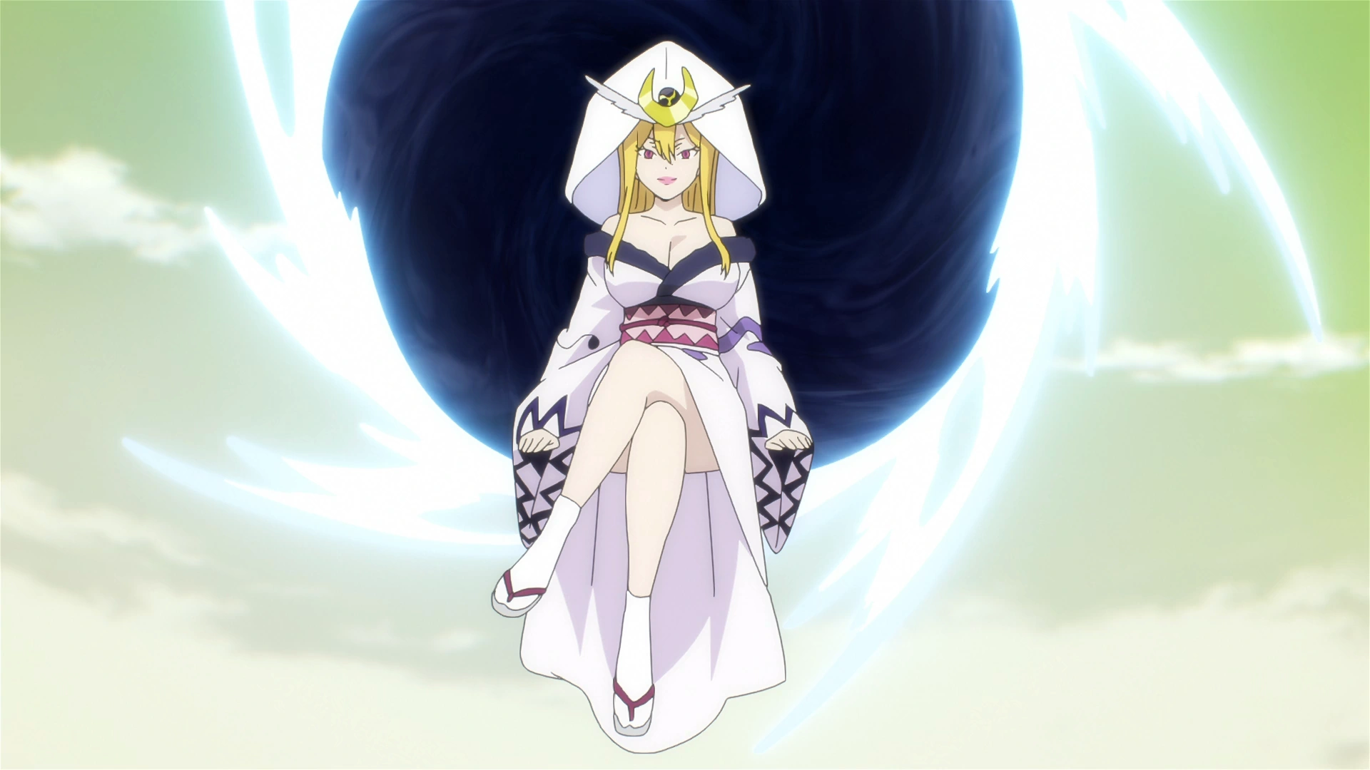 Elle est revue plus tard dans sa demeure en disant à ses prêtresses de lui ramener les membres de Fairy Tail. Conformément à ses ordres, elle est vue à la montagne de la lune noire en compagnie de ses servantes et déesses en train de faire la fête et manger devant Natsu et Grey. Après avoir fait grossir la lune, elle envoie Natsu et Grey sous la montagne de la lune noir pour les voir se battre contre des Yokai.