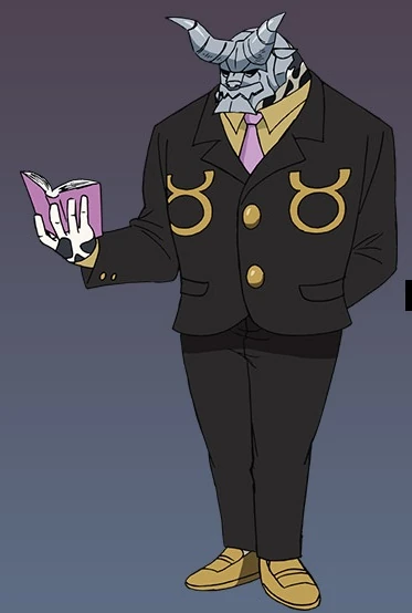 En forme libérée, Taurus est vêtu avec un costume noir sobre, en dessous de son costume on peut apercevoir le col de sa chemise qui est de couleur jaune et aussi le haut de sa cravate qui est de couleur rose pâle. Il possède les motifs du signe du taureau sur son costume. Son visage est couvert par un masque en métal aux orbites noires qui ressemble fortement au visage d'un taureau. Sa posture est droite et son torse est bombé à l'inverse du Taurus d'origine qui est trapu et penché en avant ce qui lui donne un apparence plus humaine.